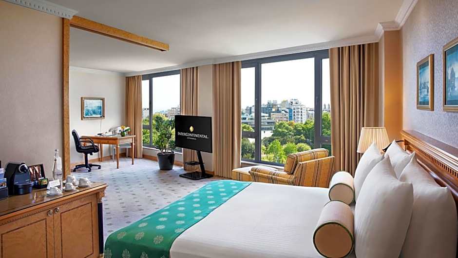 Overlooking to the Bosphorus, this spacious suite offers one king size bedded room and a living room with air conditioning. 55" Smart TV, DVD player, tea/coffee maker, safe box and ironing facilities are available. It also offers access to Executive Club Lounge at an additional charge.